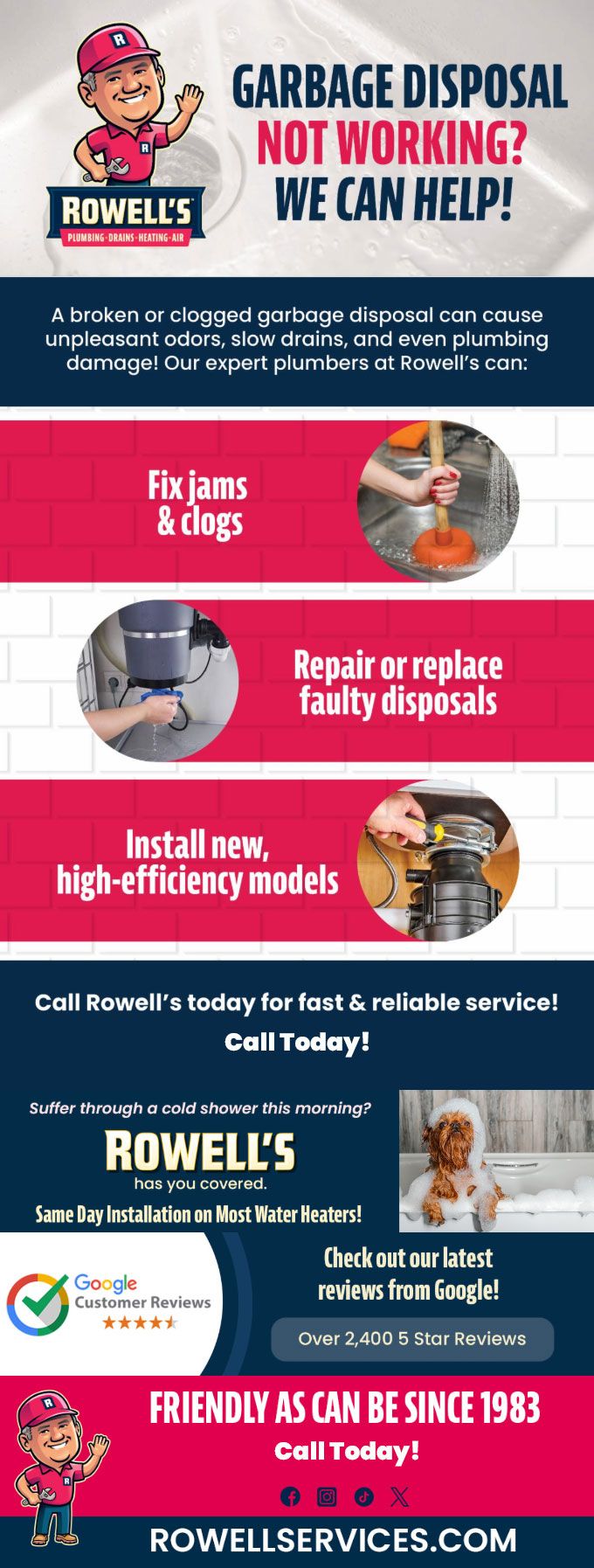 A broken or clogged garbage disposal can cause unpleasant odors, slow drains, and even plumbing damage!